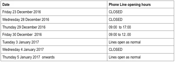 In order to ensure we can pay you promptly over this period we need to notify you that we will be operating reduced hours with regards to our payroll phone lines for payroll queries, as follows: